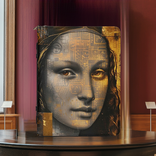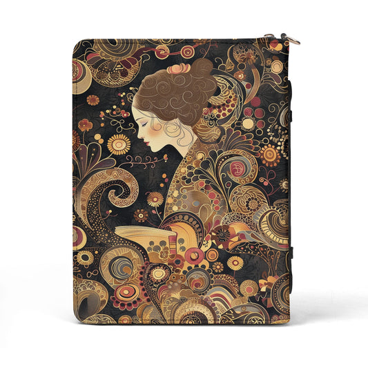 Briefcases made of synthetic leather, available in 4 sizes, with several internal pockets and carrying handle, useful for carrying diaries, books, notebooks, documents and everything you need for writing, such as pens, pencils, erasers, etc. They can be used for school, work, to store documents on the desk, to take with you when travelling, etc. The design is original and unique, designed with digital software and AI programs, as well as manual drawing techniques, by the artist Dilameart.