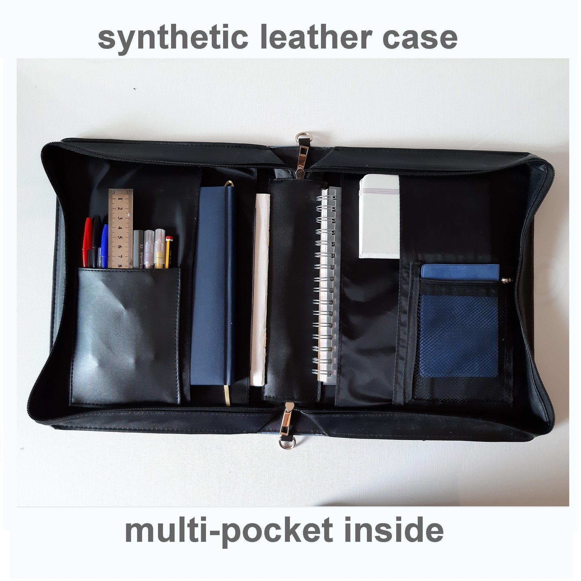 This high-quality synthetic leather case can hold your prayer book, Bible or other sacred texts, as well as notebooks, documents and everything you need for writing, such as pens, pencils, erasers, etc. because it is equipped with internal pockets where you can store everything you need. The case closes with a double zip and is equipped with a comfortable carrying handle. Available in 4 sizes and made to last over time, this case is the perfect accessory to take with you on the go, but also to keep your books on your desk or in your bookcase, or as an archive for your cards and precious memories. It's also a perfect gift to give to your friends and family, just choose the design you know they will like. The print is made with high quality technique and the drawing is original, created by the artist Dilameart, with digital drawing programs and manual painting techniques.